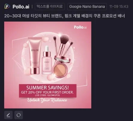 Google NanoBanana 질감·재질 표현이 강점인 이미지 생성 모델로, 제품 질감이나 소재감 표현이 필요한 배너 제작에 적합