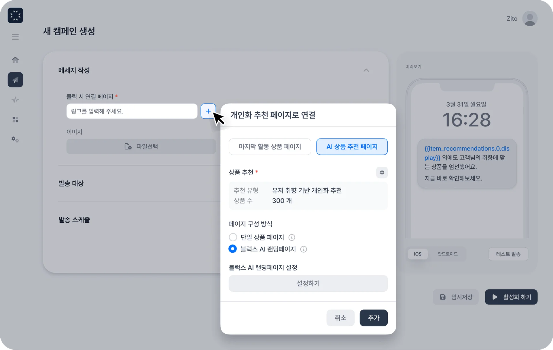 💡 고객 한 명 한 명에게 딱 맞는 AI 상품 추천 메시지를 발송해보세요!