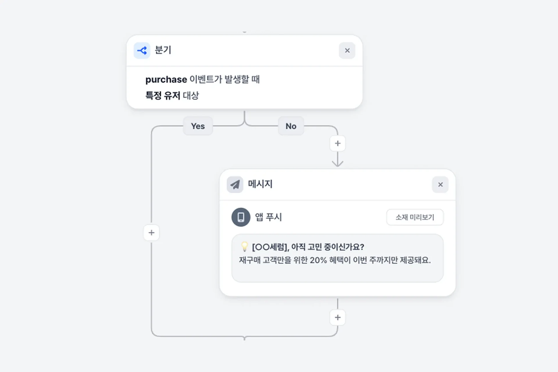 메시지를 열지 않거나 구매하지 않은 고객만 자동으로 다음 단계로 이동
