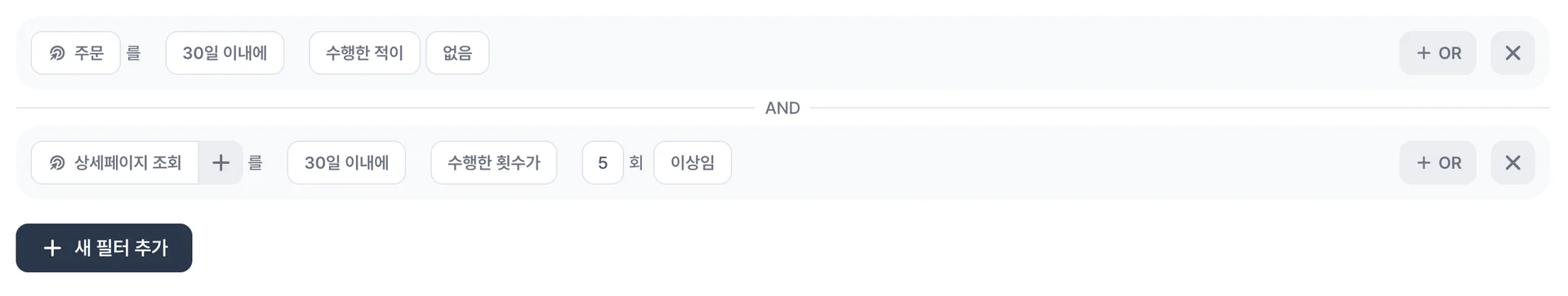 첫 구매 후 30일 경과 고객 – 제품별 평균 사용 주기를 고려한 시점 세팅