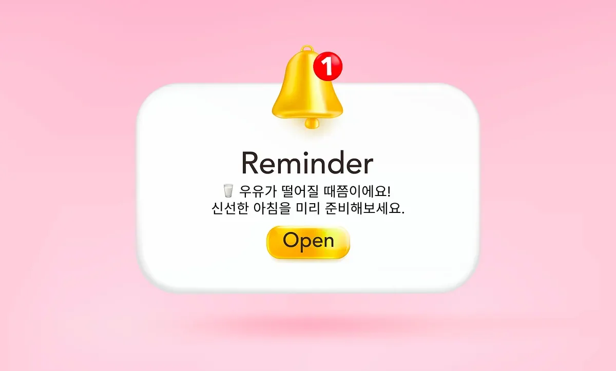 • 🥛 “우유가 떨어질 때쯤이에요! 신선한 아침을 미리 준비해보세요.”