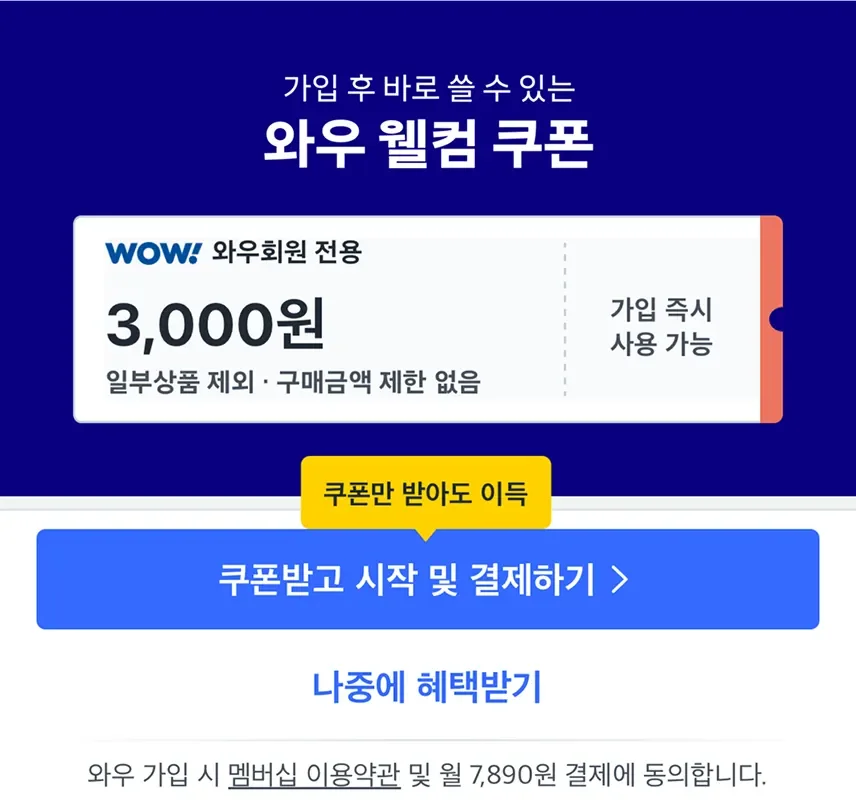 식품 브랜드 쇼핑몰 마케팅 - 쿠팡 와우 웰컴 쿠폰