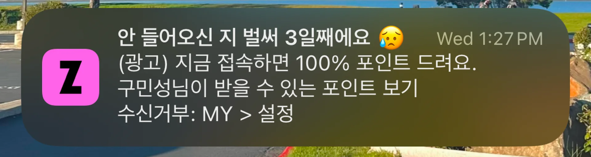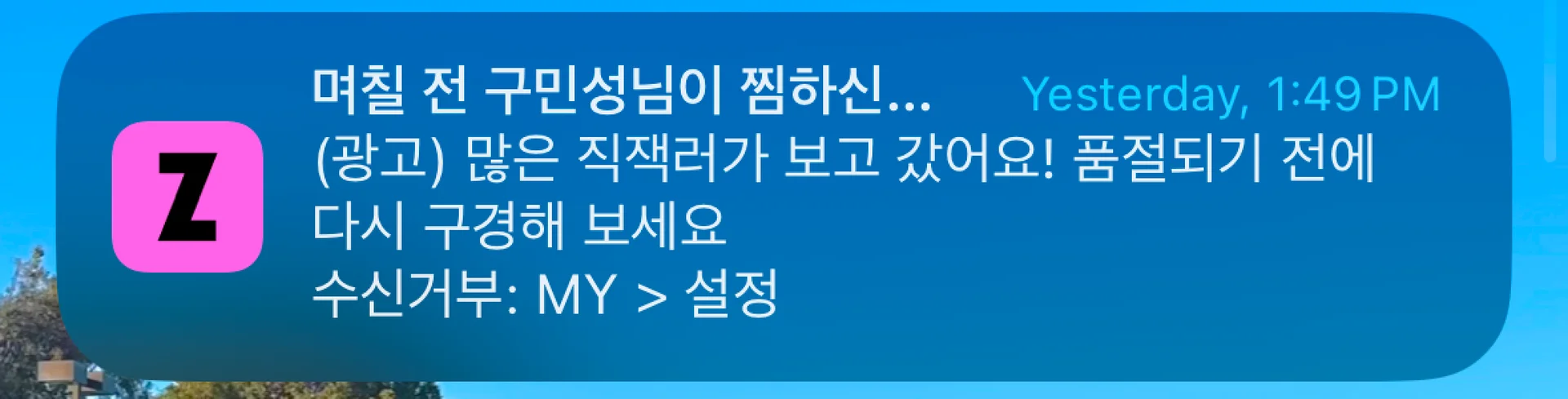 지그재그 - 재방문 유도 알림 (출처: 지그재그 앱)