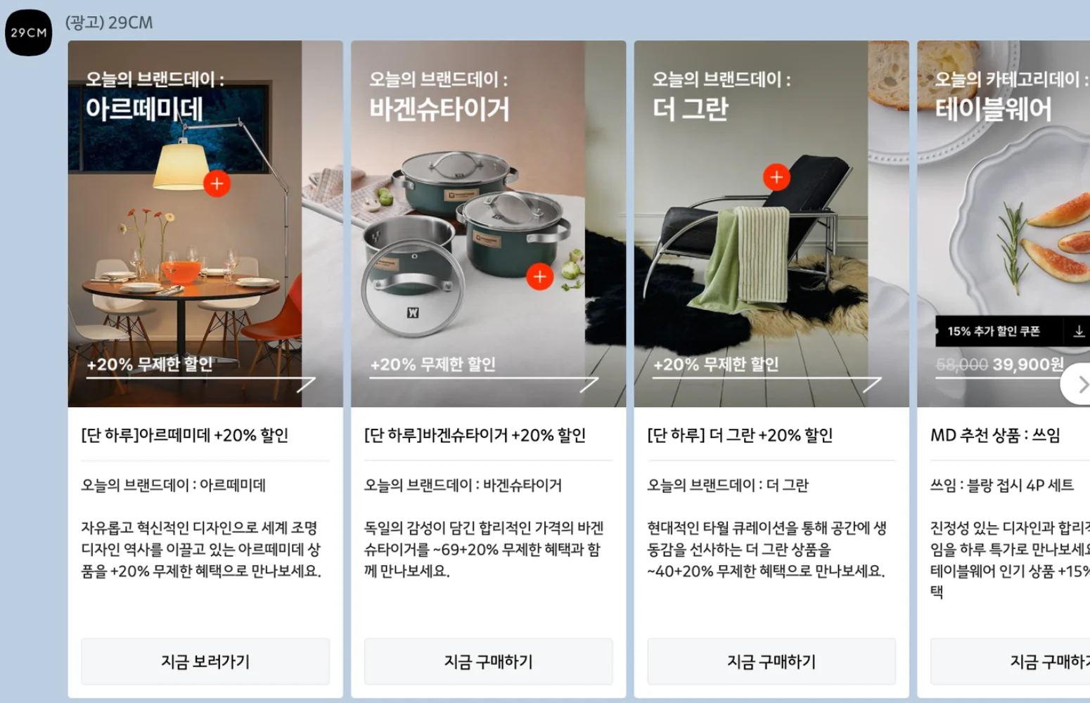 브랜드 별 기획전 알림 (출처: 29CM)