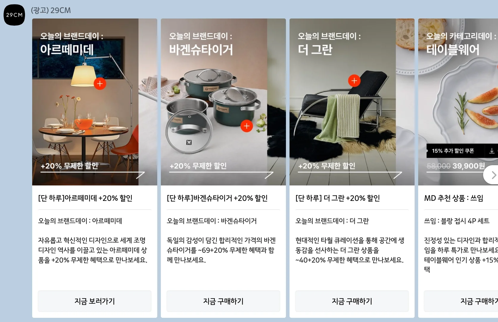 29cm- 브랜드 별 기획전 알림