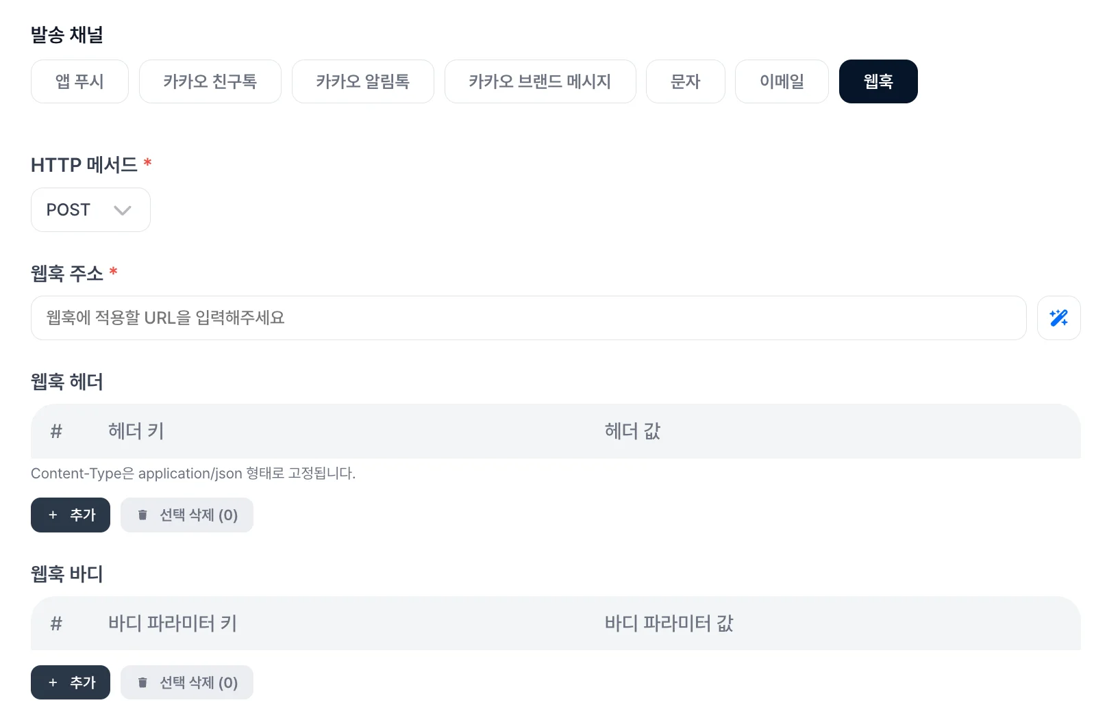 새로운 발송 채널로 웹훅 채널이 추가되었습니다.